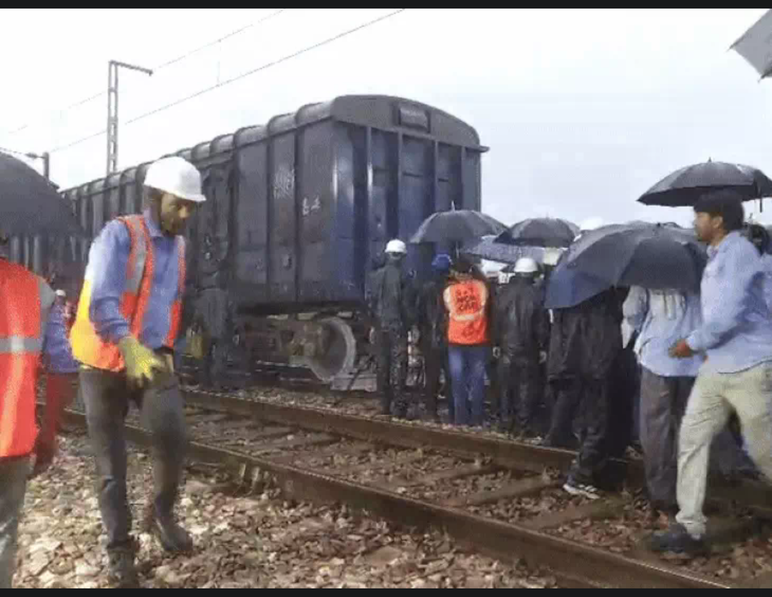 भाऊपुर के पास मालगाड़ी का डिब्बा बेपटरी