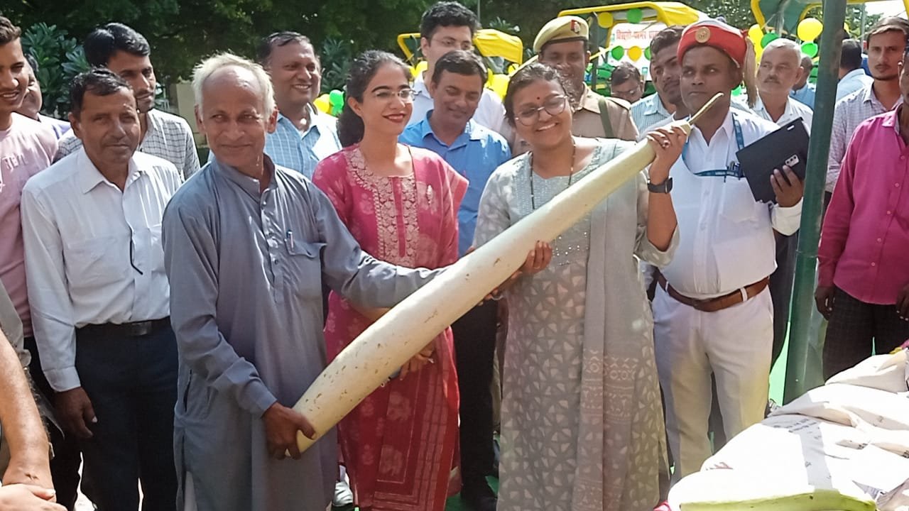 कानपुर देहात। जिले के संदलपुर ब्लाक के फरीदपुर निटर्रा के रहने वाले प्रगतिशील किसान बाबूलाल खेती बाड़ी को नया आयाम दे रहे है। पिछले दिनों उनकी लाल भिंडी व मूली ने धूम मचाई थी। अब उनकी साढ़े पांच फीट की लौकी आकर्षण का केंद बनी हुई है। कई कृषि वैज्ञानिक उनकी लौकी की फसल को देखने के लिये उनके गांव का दौरा कर रहे हैं। बाबूलाल ने बताया कि मचान विधि से लौकी बोई थी। कहा कि खेती बाड़ी को आधुनिक ढंग से कर रहे हैं। साथ ही पैसे भी कमा रहे हैं। बाबूलाल ने डीएम नेहा जैन,सीडीओ सौम्या पांडेय व एसडीएम को लौकी भेंट की।