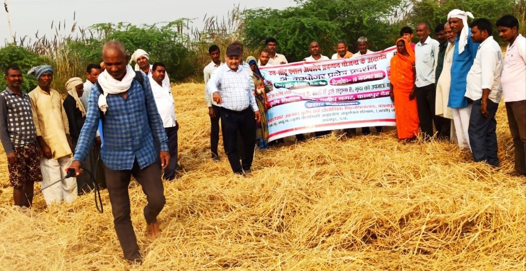 शिवली,कानपुर देहात। किसानों को पराली को डिकम्पोज कर पराली प्रबंधन के गुण बताए गए। कृषि विज्ञान केंद्र दलीपनगर द्वारा गुरुवार को कृषकों के प्रक्षेत्र पर पराली सड़ाने गलाने के लिए डी कंपोजर का प्रयोग उनके प्रक्षेत्र पर किया गया। मैथा विकासखंड के गांव औरंगाबाद, सहतावनपुरवा, बैरी सवाई,झम्मानिवादा के क्षेत्रों पर मृदा वैज्ञानिक डॉ खलील खान ने बताया कि 100 मिलीलीटर डी कंपोजर को 200 लीटर पानी में घोलकर उसमें आधा किलो गुड़ भी मिलाते हैं। तत्पश्चात इस घोल को स्प्रेयर मशीन द्वारा फसल अवशेष पर छिड़काव कर देते हैं जिससे यह फसल अवशेष 15 से 20 दिनों में सड़कर खाद बन जाती है। और मिट्टी की उर्वरा शक्ति को बढ़ाता है। डॉक्टर खान ने बताया तत्पश्चात खेत में मोल्ड बोर्ड हल, डिस्क हैरो या रोटावेटर के माध्यम से मिट्टी में मिला दिया जाता है। इस डी कंपोजर का छिड़काव के बाद अगली फसल की बुवाई की जाती है। इस अवसर पर आसपास क्षेत्र के 100 से अधिक किसान उपस्थित रहे।