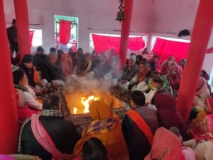 कानपुर देहात। उत्तर भारत में विख्यात कानपुर देहात जिले के शिवली के जागेश्वर मंदिर के तेरहवें वार्षिकोत्सव का ग्यारह दिनों से चल रहे धार्मिक आयोजन का बुधवार को धूमधाम से समापन हो गया। रुद्रमहायज्ञ में आचार्य रमेश शास्त्री ने समाज मे शारीरिक,मानसिक व्याधियों को खत्म करने,सुखशांति व मनोकामना पूर्ण करने के लिए बुधवार को दो लाख उन्नीस हजार चार सौ इकत्तीस आहुतियां डलवाने के बाद पूर्णाहुति कराई। पूर्णाहुति में एसपी पांडेय,सुरेश कटियार,विमलेश अग्निहोत्री,मनीष सैनी,सत्यदेव ने आहुतियां डाली। मंदिर को विभिन्न फूलों से ह्रदयेश सैनी ने सजावट की। पुजारी राकेशपुरी ने बाबा जागेश्वर की विशेष आरती उतारकर पूजन किया। भक्तों ने केक भी काटा।व्यास रामचन्द्र दास ने अंतिम दिवस की कथा सुनाते हुए कहा कि भगवान का स्मरण व्यक्ति को नाना प्रकार की व्याधियों से बचाने का मूलमंत्र है। इस मौके पर शेखर त्रिवेदी,शिवकुमार तिवारी,दिनेश प्रजापति,भूपेंद्र सिंह,जनार्दन यादव,देवेंद्र त्रिपाठी,जीतू,सुमित पाठक,अरविंद साहू मौजूद रहे।