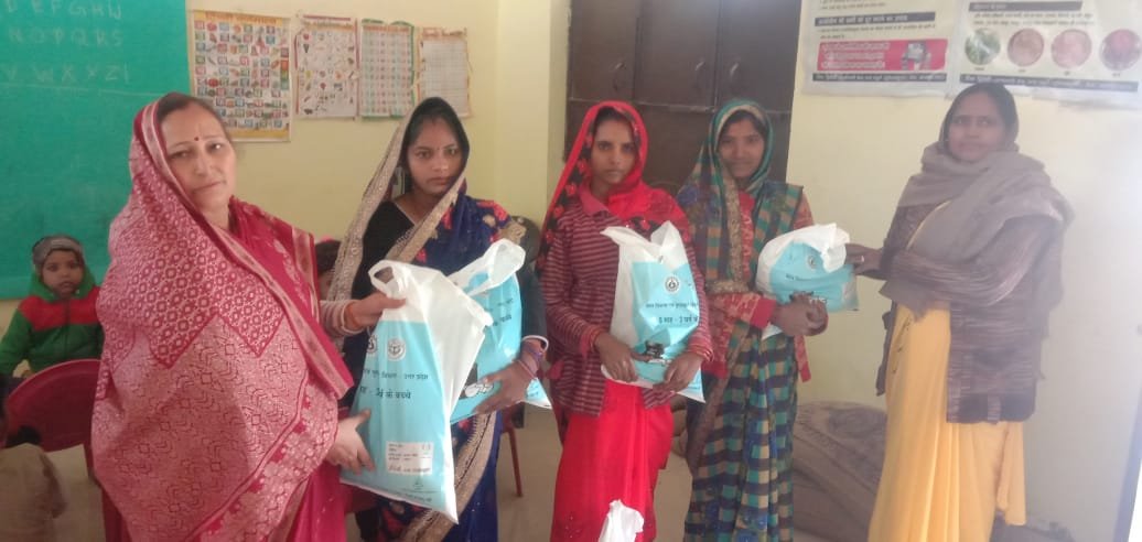 आंगनवाड़ी केंद्र माण्डा चतुर्थ में लाभार्थियों को बांटा गया पुष्टाहार