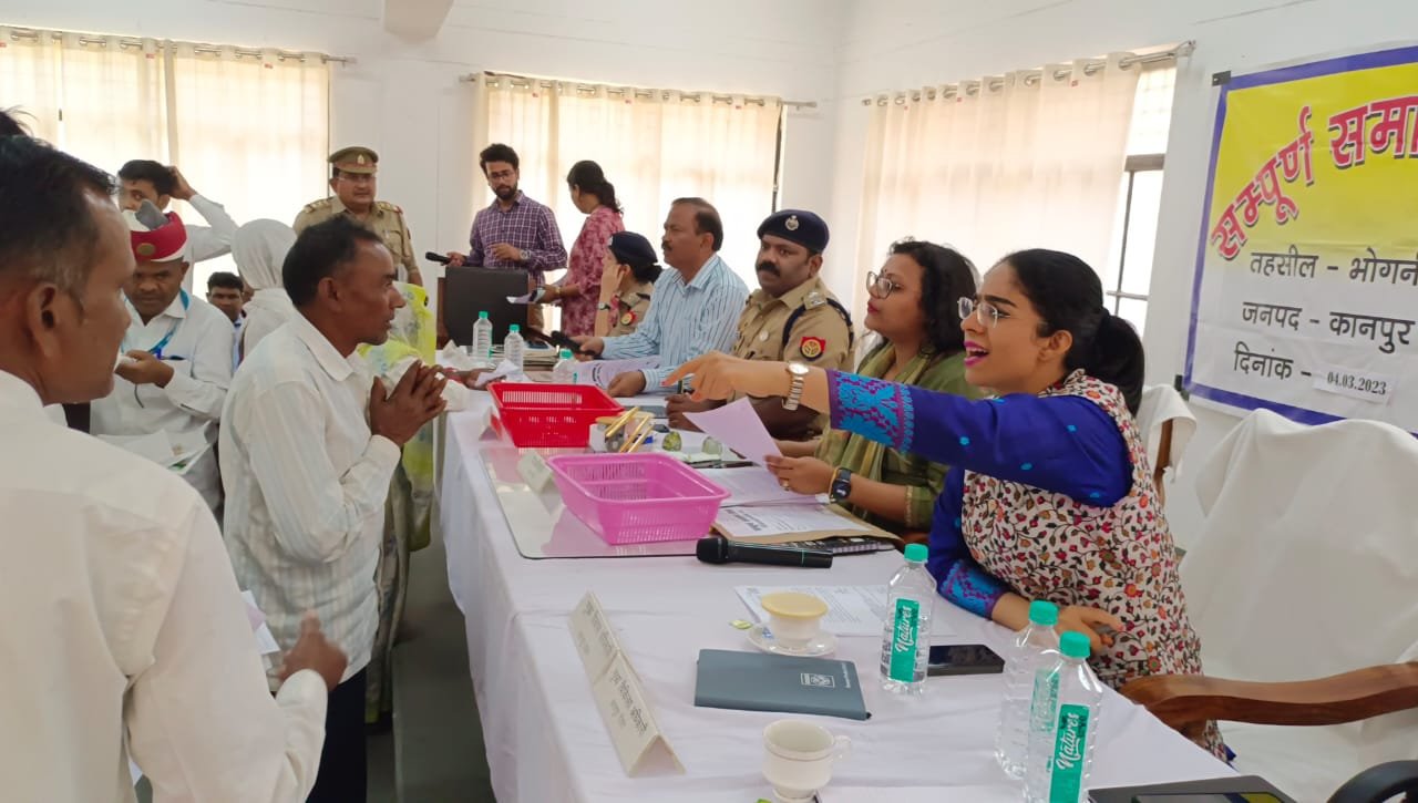 पुखरायां,कानपुर देहात,03 मार्च 2023।भोगनीपुर तहसील में जिलाधिकारी नेहा जैन की अध्यक्षता में आयोजित जिला स्तरीय सम्पूर्ण समाधान दिवस में आई 161 शिकायतों में 8 शिकायतों का मौके पर निस्तारण किया गया। वहीं अन्य शिकायतों को जल्द निस्तारण के निर्देश दिए गए हैं।