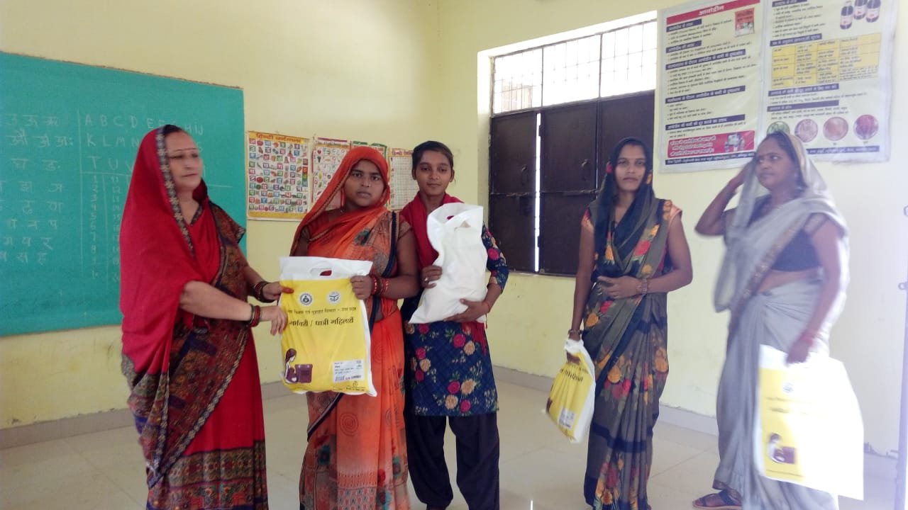 आंगनवाड़ी केंद्र माण्डा चतुर्थ में लाभार्थियों को बांटा गया पुष्टाहार
