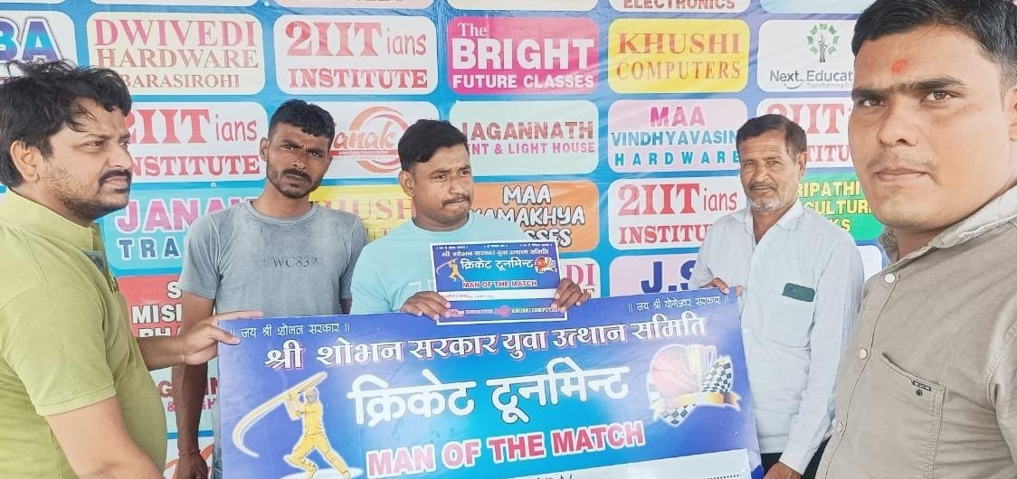 श्री शोभन सरकार युवा उत्थान समिति द्वारा अटवा मैदान बैरी में आयोजित क्रिकेट टूर्नामेंट में जादेपुर क्रिकेट टीम ने टॉस जीतकर पहले बालिंग करने का फैसला किया। तहसील मैथा राजस्व संघ की टीम ने बारह ओवर में 143 रन बनाए। सबसे ज्यादा रन किशन ने 91 रन ठोके। मुकाबला का पीछा करने उतरी जादेपुर क्रिकेट टीम मात्र 28 रन पर आ आऊट हो गई। राजस्व संघ की टीम के कप्तान नायब तहसीलदार मनोज रावत ने दो खिलाड़ियों को रन आउट किया। मैंन ऑफ मैच का खिताब किशन को दिया गया। इस मौके पर आयोजक आशुतोष द्विवेदी,प्रधान प्रतिनिधि राजाबाबू, पूतन शुक्ला,शुक्ला, शिवम् वर्मा,रोहित मिश्रा, प्रशांत त्रिपाठी रोहित स्वर्णकार मौजूद रहे।