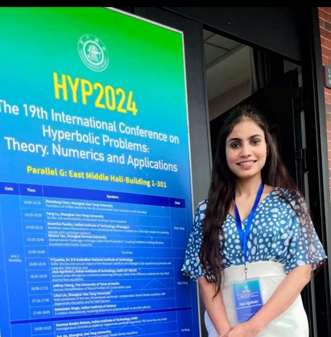 कानपुर,14 जुलाई 2024। जया अग्निहोत्री आईआईटी दिल्ली से गणित विषय में न्यूमेरिकल मैथड फार हाइपरबोलिक कंजरवेशन ला में पीएचडी की फाइनल की पढ़ाई कर रही है जया ने चीन के शंघाई स्थित जिओ टोंग यूनिवर्सिटी में अप्लाइड मैथमेटिक्स पर आयोजित इंटरनेशनल कॉन्फ्रेंस हाइप 2024 में प्रतिभाग कर कानपुर शहर का नाम रोशन किया है। एक जुलाई से लेकर पांच जुलाई तक इंटरनेशनल कॉन्फ्रेंस आयोजित किया गया। जया ने हाइपरबोलिक पार्सियल डिफरेंसेस इक्वेशन पर रिसर्च पेपर के माध्यम से विश्व के चुनिंदा प्रोफेसर वा छात्र छात्राओं के सामने रखा। जया ने दिल्ली आईआईटी के प्रोफेसर हरीश कुमार को देखरेख में रिसर्च पेपर तैयार किया। जिसमें गणित में आने वाली समस्याओं पर खोज और समाधान प्रस्तुत किया गया है।कानपुर देहात के शिवली कस्बे के मूल रूप से रहने वाले योगेश अग्निहोत्री ने बताया कि बिटिया जया शुरू से पढ़ाई में मेधावी रही है।