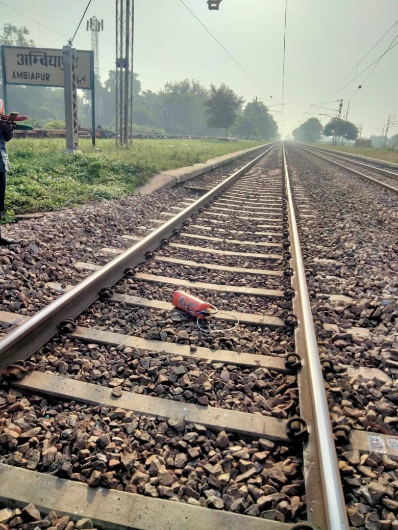 रेलवे ट्रैक पर मिला अग्निशमन सिलेंडर